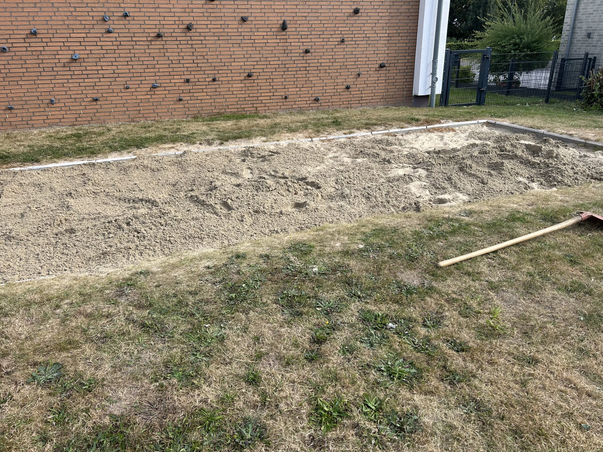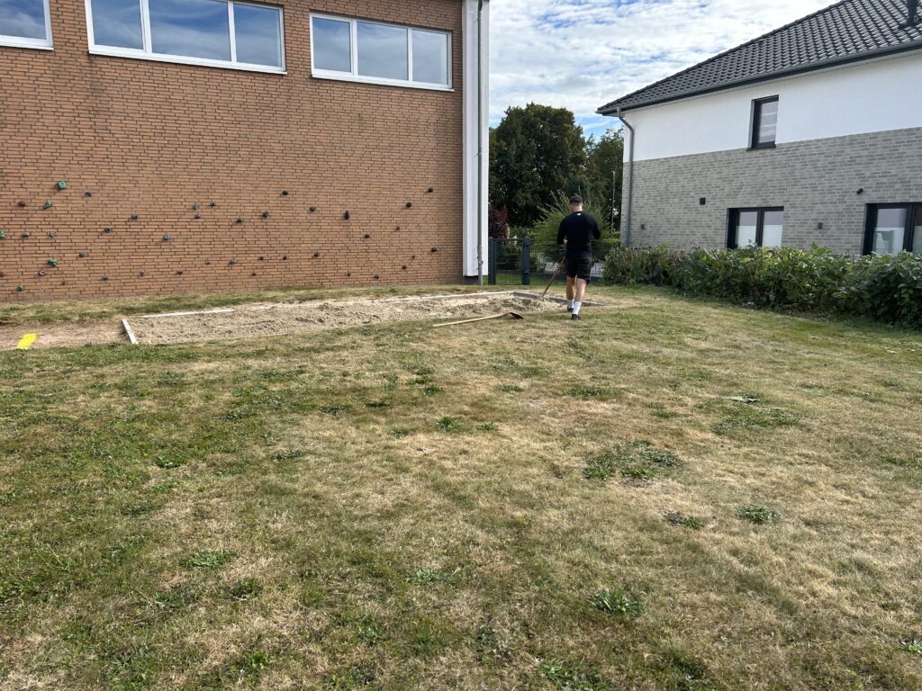 Unser fleißiger Helfer Timon, der den Garten der Grundschule in Schuss hält, verteilt gerade fleißig den Sand für die Sprunggrube. Nach langer Zeit wird diese endlich wieder gefüllt. DANKE dafür! Jetzt können alle Schüler*innen in der Rasenplatzpause wieder Weitsprung üben und Spaß haben.